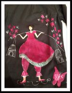 Sur chaque vêtement, après la peinture, je couds des perles et sequins pour obtenir une finition très fille mais pas trop brillante, juste ce qu'il faut .  TEE SHIRT ENFANT |