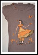 Sur chaque vêtement, après la peinture, je couds des perles et sequins pour obtenir une finition très fille mais pas trop brillante, juste ce qu'il faut .  Tee shirt 10 ans |