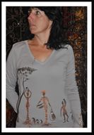 Mes créations sont en perpétuelle évolution , aussi n'hésitez pas à me contacter. Tous mes tee shirt ne figurent pas sur ces pages , et j'ai sûrement dans mes tiroirs celui dont vous rêvez. De plus si je ne l'ai pas, je vous le fabrique selon vos désirs -taille , modèle, couleur- et cela sans supplément. Alors à très vite!Mes vêtements sont peints avec un mélange spécial de peintures très résistantes permettant le lavage main ou machine .