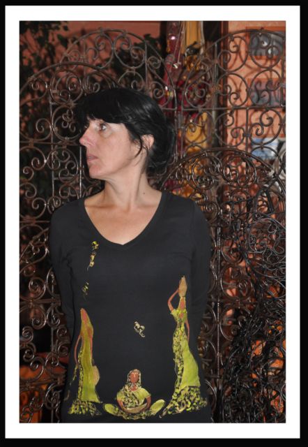 Mes créations sont en perpétuelle évolution , aussi n'hésitez pas à me contacter. Tous mes tee shirt ne figurent pas sur ces pages , et j'ai sûrement dans mes tiroirs celui dont vous rêvez. De plus si je ne l'ai pas, je vous le fabrique selon vos désirs -taille , modèle, couleur- et cela sans supplément. Alors à très vite! | TEE SHIRT ADULTE |