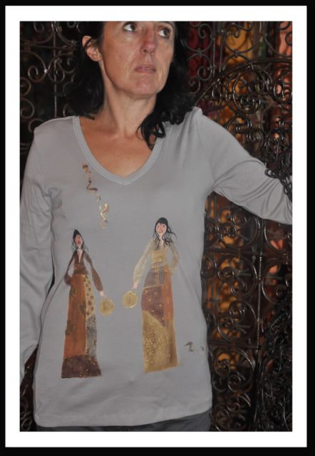 Mes créations sont en perpétuelle évolution , aussi n'hésitez pas à me contacter. Tous mes tee shirt ne figurent pas sur ces pages , et j'ai sûrement dans mes tiroirs celui dont vous rêvez. De plus si je ne l'ai pas, je vous le fabrique selon vos désirs -taille , modèle, couleur- et cela sans supplément. Alors à très vite! TEE SHIRT " LES ELEGANTES " Manches longues , Taille 38/40 |