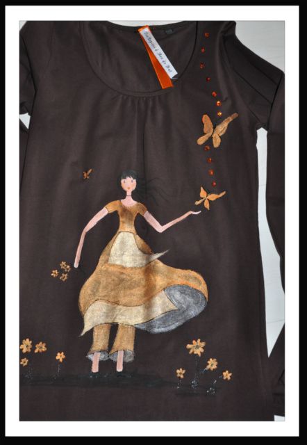 Mes créations sont en perpétuelle évolution , aussi n'hésitez pas à me contacter. Tous mes tee shirt ne figurent pas sur ces pages , et j'ai sûrement dans mes tiroirs celui dont vous rêvez. De plus si je ne l'ai pas, je vous le fabrique selon vos désirs -taille , modèle, couleur- et cela sans supplément. Alors à très vite! TEE SHIRT ADULTE |