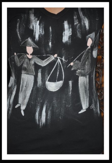 Mes créations sont en perpétuelle évolution , aussi n'hésitez pas à me contacter. Tous mes tee shirt ne figurent pas sur ces pages , et j'ai sûrement dans mes tiroirs celui dont vous rêvez. De plus si je ne l'ai pas, je vous le fabrique selon vos désirs -taille , modèle, couleur- et cela sans supplément. Alors à très vite! TEE SHIRT "AUTOUR DU MONDE " Voyage en ASIE Manches longues ou courtes
