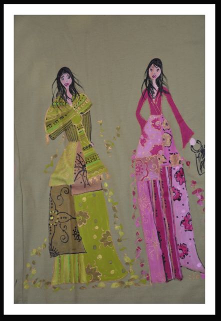 Mes créations sont en perpétuelle évolution , aussi n'hésitez pas à me contacter. Tous mes tee shirt ne figurent pas sur ces pages , et j'ai sûrement dans mes tiroirs celui dont vous rêvez. De plus si je ne l'ai pas, je vous le fabrique selon vos désirs -taille , modèle, couleur- et cela sans supplément. Alors à très vite! TEE SHIRT " LES ELEGANTES " Tee shirt peint à la main Manches courtes |